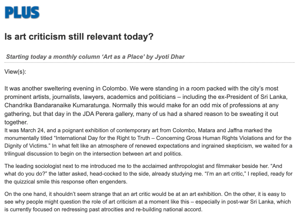 Sri Lanka Entry, Almanac, Art Asia Pacific, January 2015